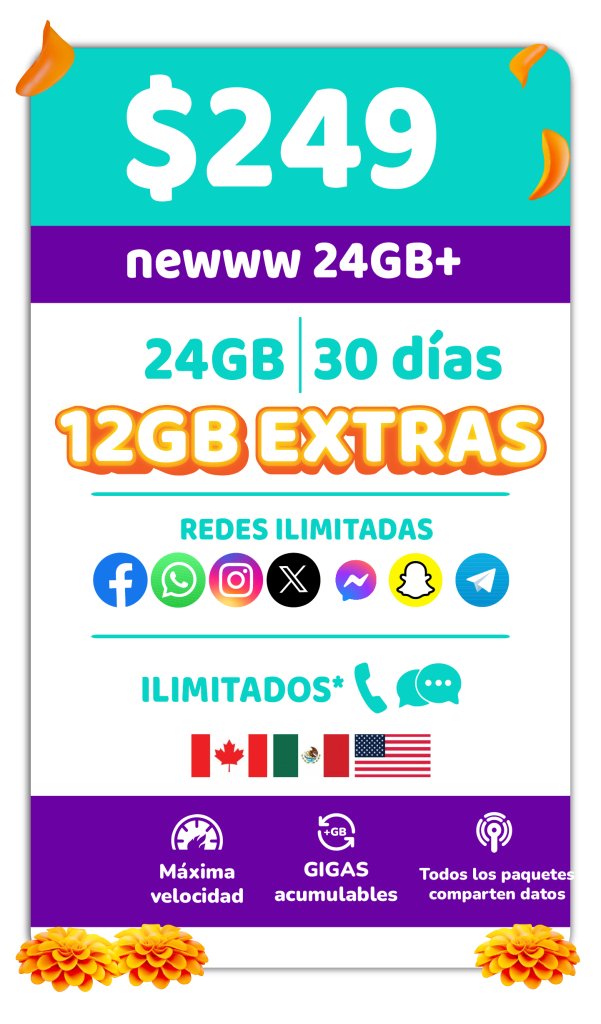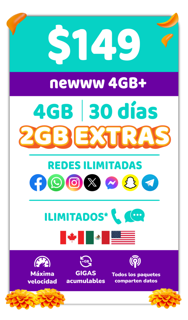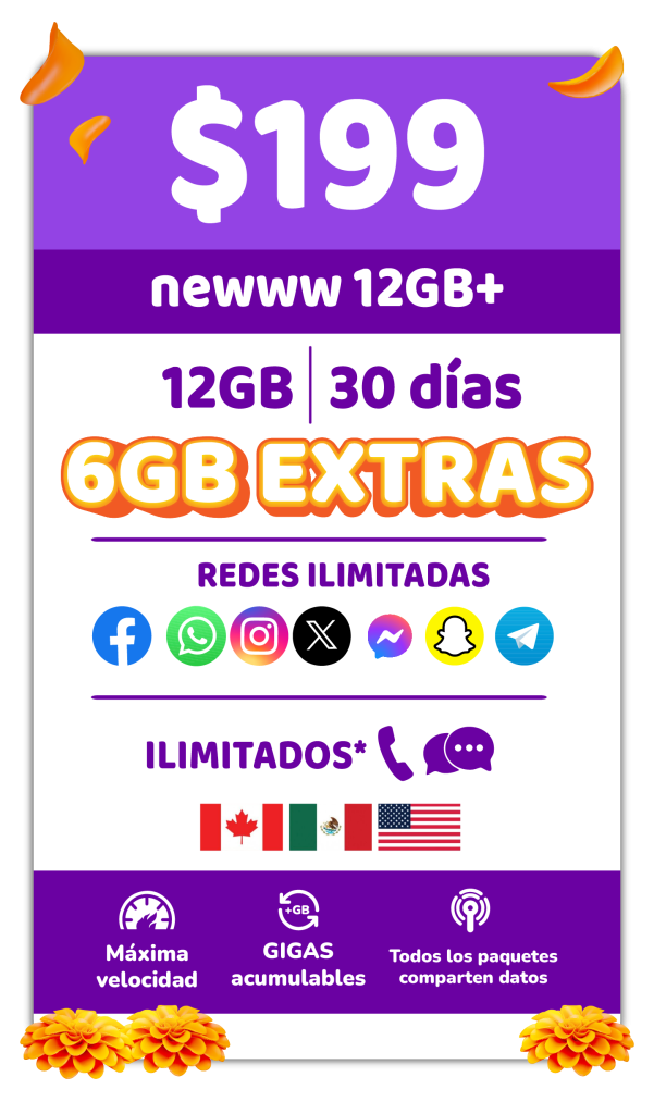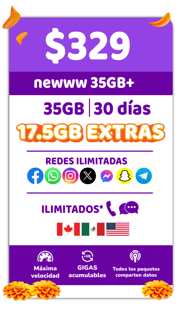 Todos los precios incluyen IVA y están expresados en Moneda Nacional. Las tarifas y promociones de Newww se encuentran inscritas en el Registro Público de Concesiones del Instituto Federal de Telecomunicaciones con los siguientes números: 1835554, 1835561, 1836196, 1836195, 1836170, 1836167, 1836211, 1836208, 1836345, 1836367, 1836437, 1836449, 1836477, 1836466, 1836495 y 1836499 podrán consultarse en el hipervínculo correspondiente al Visor de Tarifas del registro Público de Telecomunicaciones de ese instituto, en la dirección electrónica: https://tarifas.ift.org.mx/ift_visor/