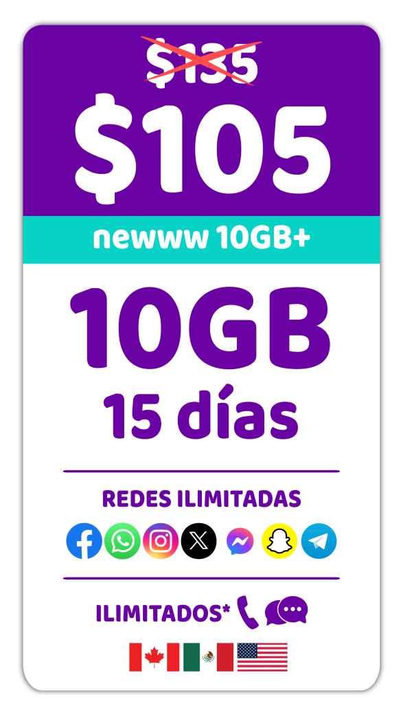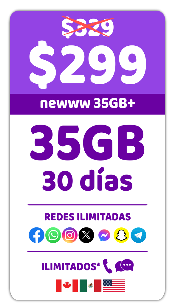 Instálala al instante, conserva tu número con portabilidad o activa una línea nueva y disfruta redes sociales ilimitadas, más GB y cobertura nacional.