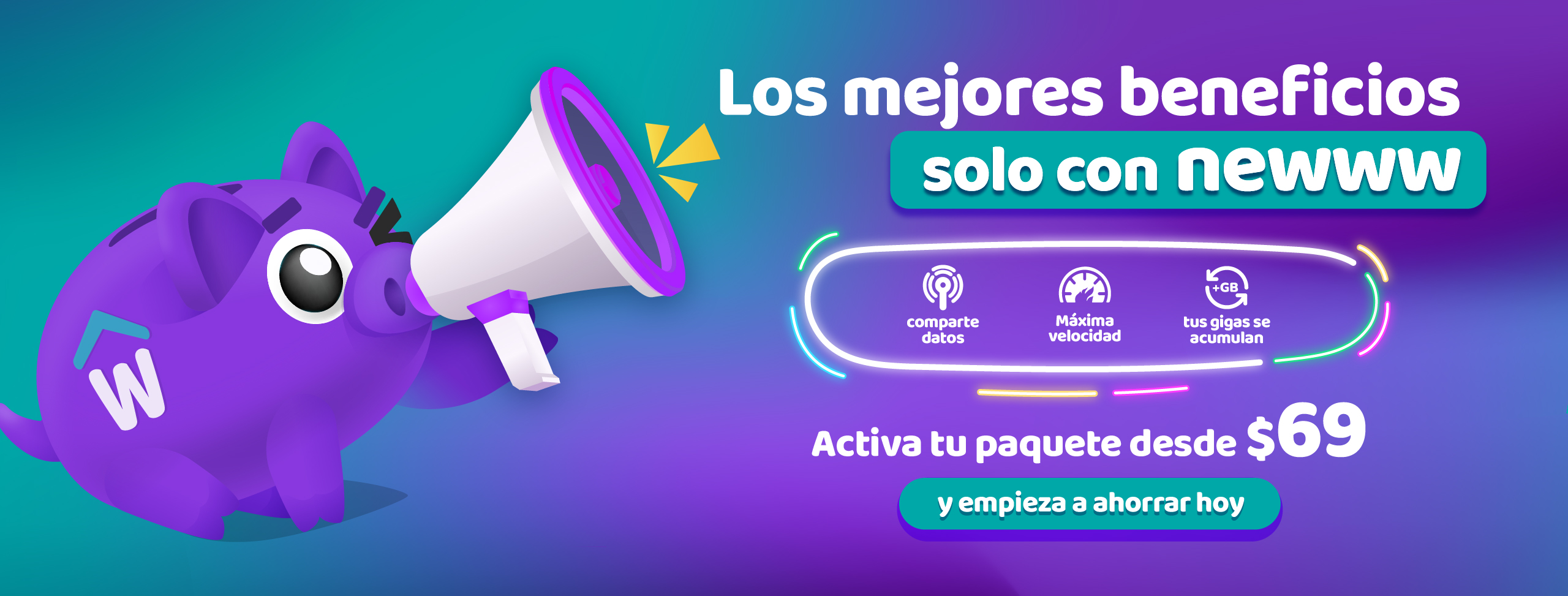 Todos los precios incluyen IVA y están expresados en Moneda Nacional. Las tarifas y promociones de Newww se encuentran inscritas en el Registro Público de Concesiones del Instituto Federal de Telecomunicaciones con los siguientes números: 1835554, 1835561, 1836196, 1836195, 1836170, 1836167, 1836211, 1836208, 1836345, 1836367, 1836437, 1836449, 1836477, 1836466, 1836495 y 1836499 podrán consultarse en el hipervínculo correspondiente al Visor de Tarifas del registro Público de Telecomunicaciones de ese instituto, en la dirección electrónica: https://tarifas.ift.org.mx/ift_visor/